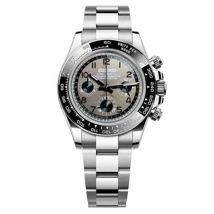 Inspirado no icónico design Daytona, e com o prestigiado movimento híbrido Seiko VK63, apresentamos o Seiko Mod Daytona. Um relógio de 40 mm de qualidade premium, que combina a aliança perfeita entre excelência e acessibilidade.