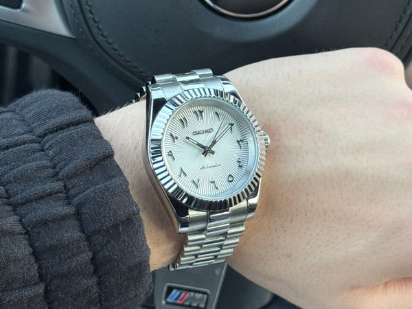 Inspired by the iconic Datejust design, and featuring the prestigious Seiko NH35 automatic movement, we present the Seiko Mod Datejust. A 36 / 40 mm high-end quality watch combining the perfect alliance between excellence and accessibility.